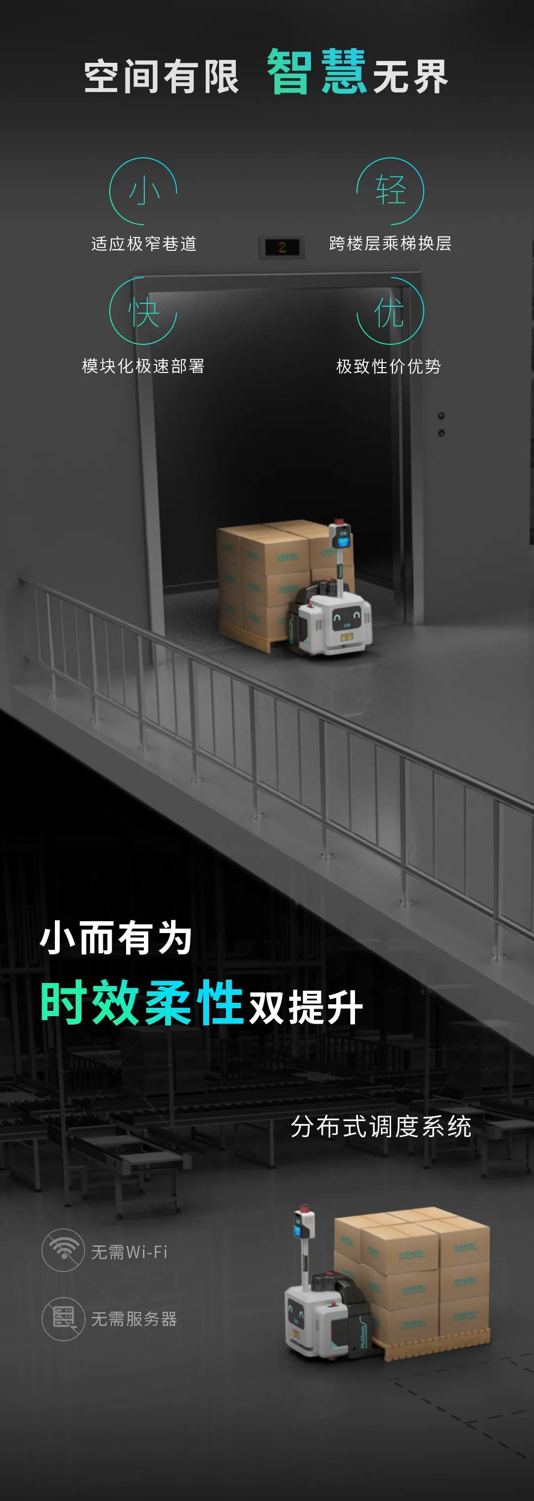 勱微機(jī)器人專(zhuān)注于先進(jìn)的機(jī)器人與人工智能技術(shù),為客戶(hù)提供完整的智能制造及智慧物流解決方案。硬件產(chǎn)品包括:各類(lèi)型無(wú)人叉車(chē)、AMR、無(wú)人牽引車(chē)及倉(cāng)儲(chǔ)機(jī)器人;軟件系統(tǒng)包括:勱微云、WMS、WCS、現(xiàn)場(chǎng)管理系統(tǒng)及多種視覺(jué)解決方案,已在工廠(chǎng)、倉(cāng)儲(chǔ)、物流等領(lǐng)域交付了大量標(biāo)桿項(xiàng)目,成為行業(yè)領(lǐng)先客戶(hù)信賴(lài)的合作伙伴。