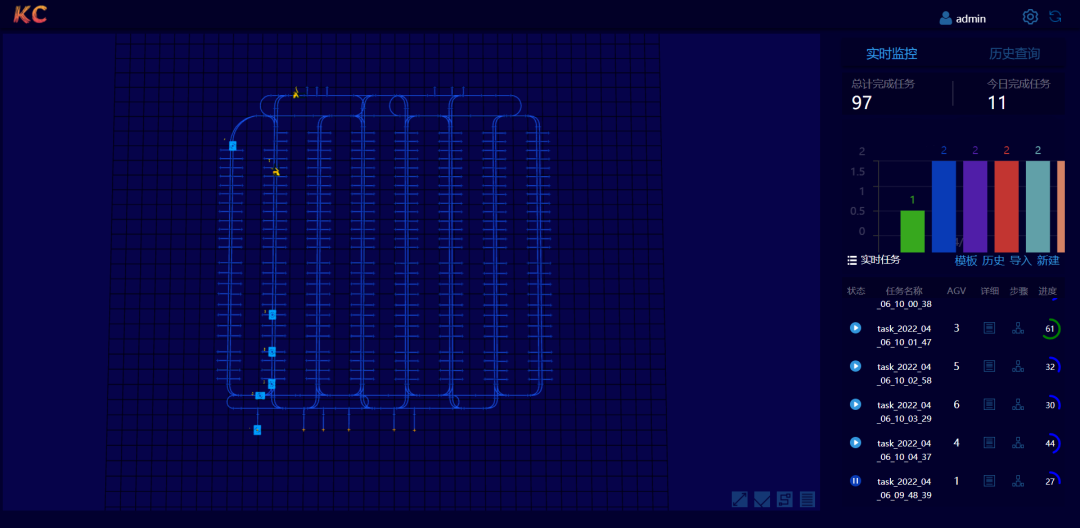 科聰調(diào)度軟件提供現(xiàn)場一比一3D模型顯示定制,現(xiàn)場運行狀態(tài)、車輛狀態(tài)、任務(wù)狀態(tài)等信息一目了然。簡潔明了的按鈕功能設(shè)計,友好便捷的交互提示,讓用戶在圖形化界面中完成對設(shè)備的配置與管理。