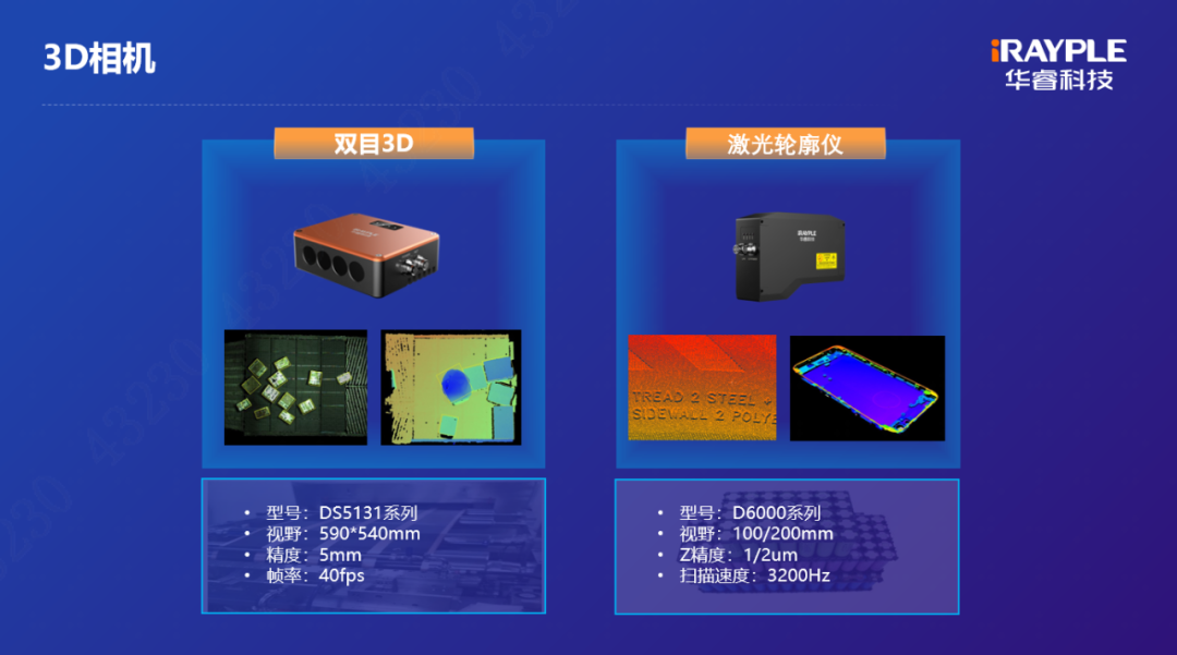 針對智能相機產(chǎn)品,全新發(fā)布X86智能相機,搭載Win10操作系統(tǒng),方便二次開發(fā);產(chǎn)品支持VGA顯示和USB輸入,可接顯示器用于顯示,支持接入鼠標(biāo)/鍵盤/U盤/加密狗;分辨率豐富,從130萬到2000萬可選。針對3D產(chǎn)品,全新發(fā)布了雙目3D和激光輪廓儀。雙目3D采用了優(yōu)越的光學(xué)設(shè)計,抑制環(huán)境光能力強;內(nèi)置深度學(xué)習(xí)引擎,實時輸出物體3D坐標(biāo),實現(xiàn)實時檢測;可處理毫米級低包裹,幀率高。廣泛應(yīng)在在單件分離、無序抓取和量方測量等方面。激光輪廓儀,提供精確點云圖和2D深度圖,Z方向重復(fù)精度可達1.2μm,掃描數(shù)據(jù)更穩(wěn)定;支持多臺相機拼接,可應(yīng)用在輪胎字符識別,PIN針缺陷、有無檢測、工件平整度檢測等。