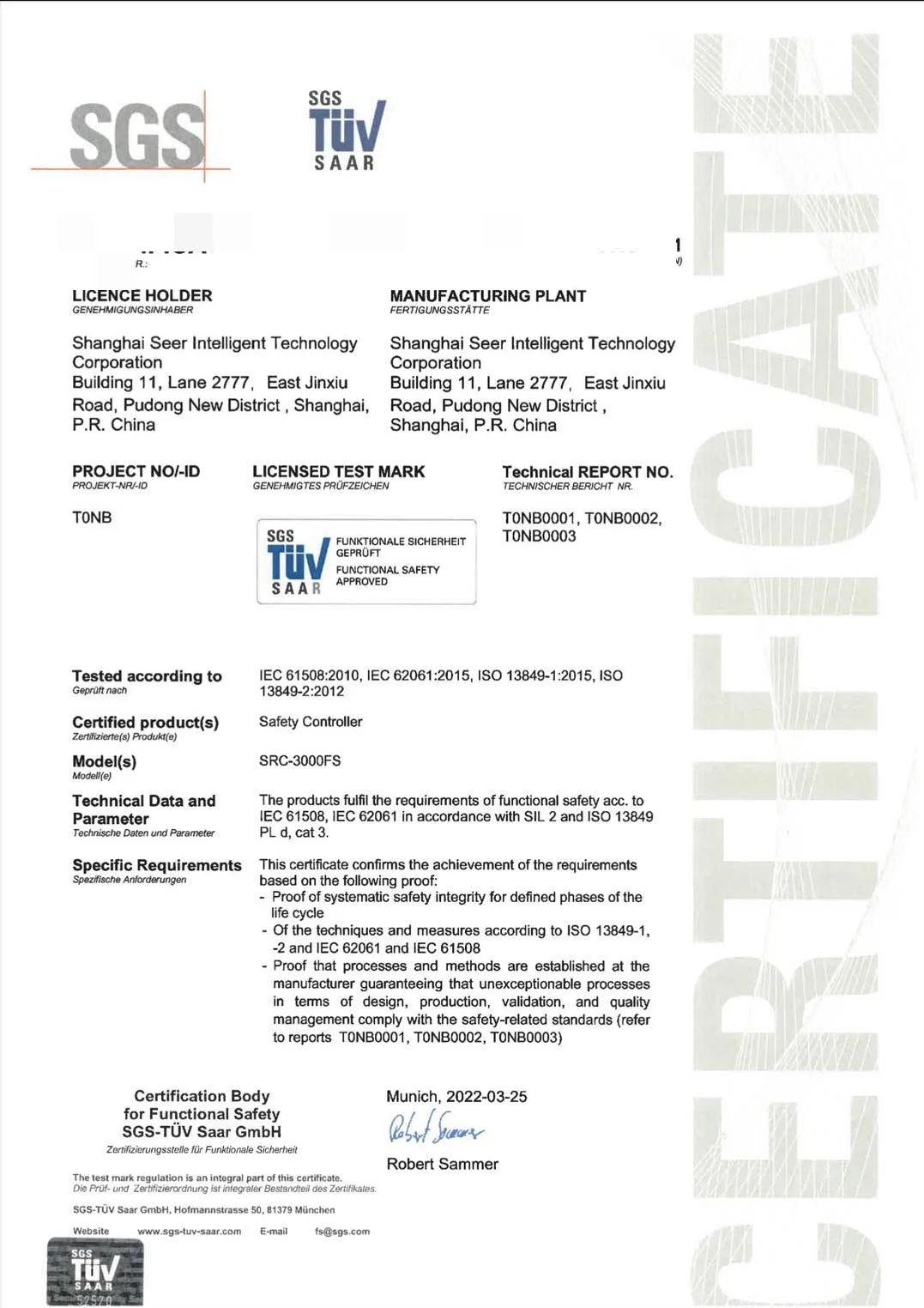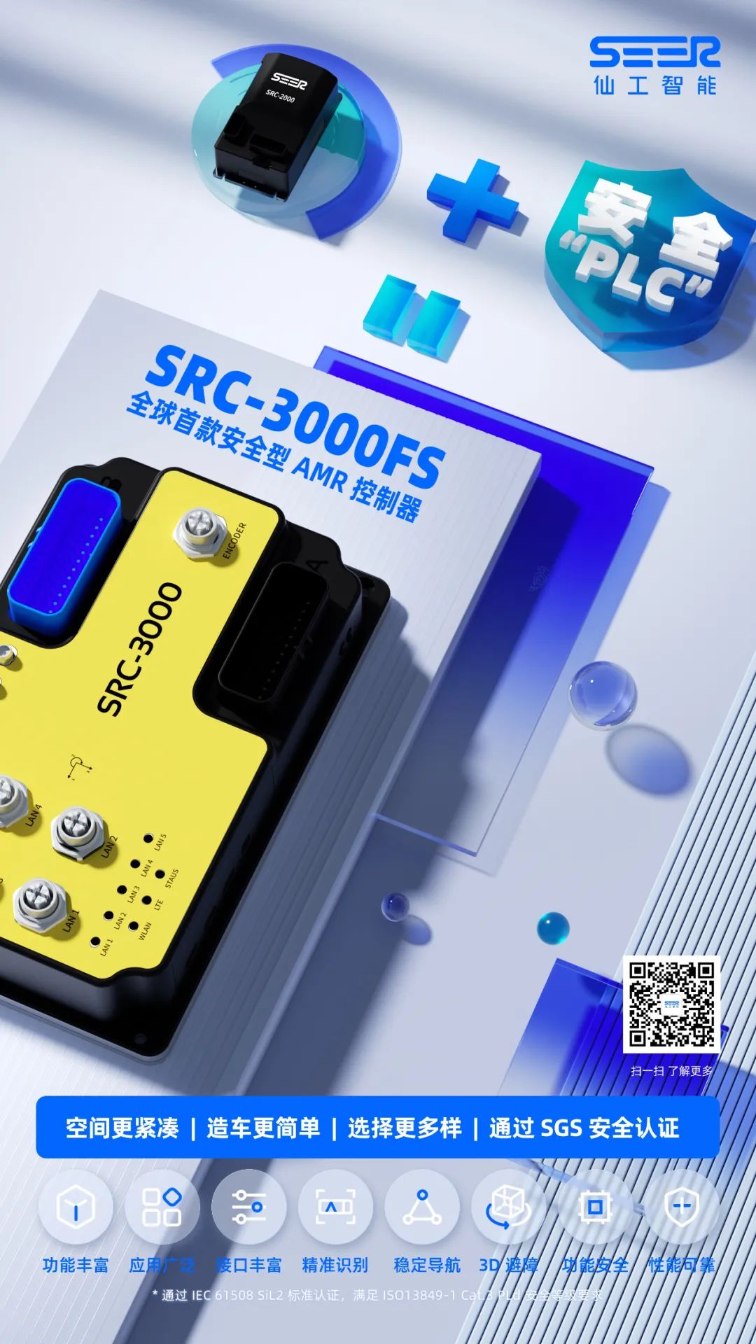 仙工智能 SRC-3000FS 由仙工智能自主研發(fā)的安全型 AMR 控制器,通過了 SGS TUV SAAR 功能安全認(rèn)證。SRC-3000FS 集激光SLAM導(dǎo)航、功能安全于一體的,是目前唯一一個(gè)通過該認(rèn)證的控制器產(chǎn)品。這是全球控制器領(lǐng)域的技術(shù)首次突破,彰顯仙工智能的技術(shù)實(shí)力,見證國產(chǎn)控制器的制高點(diǎn)的誕生。