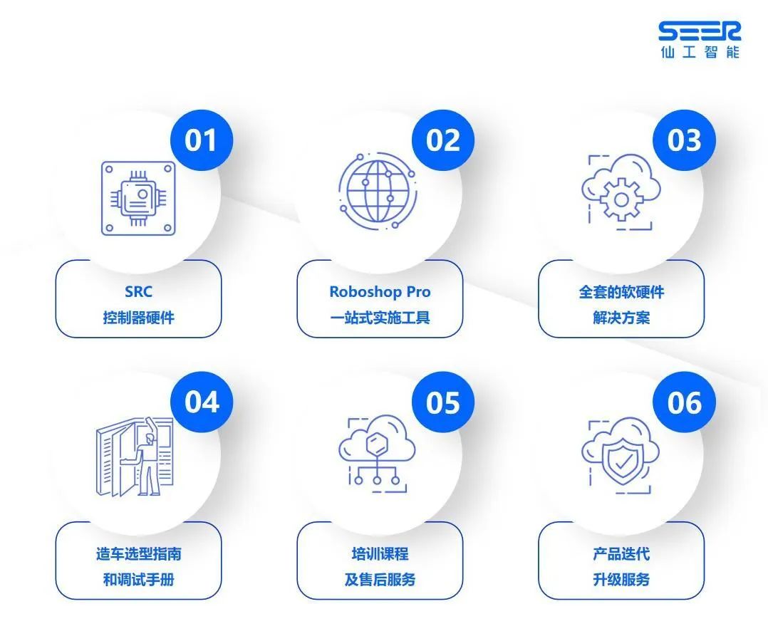 為了幫助客戶更輕松地實(shí)現(xiàn)打造 AMR 的需求,仙工智為客戶提供全套方案支持,方案中不僅是一臺(tái) SRC 控制器,而且是涵蓋硬件、軟件、造車技術(shù)方案、選型及調(diào)試手冊、培訓(xùn)及服務(wù)等全套技術(shù)服務(wù),消除一切造 AMR 的障礙。
