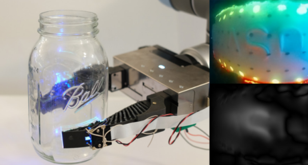 GelSight鰭狀射線抓取器能夠感受到梅森罐上的圖案。|來源:CSAIL