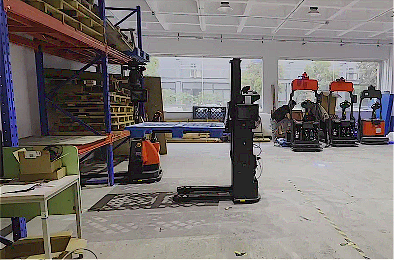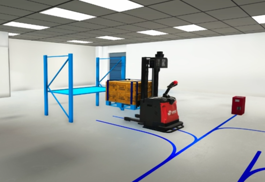 數(shù)字孿生畫面中搬運貨物,實際演示過程以托盤代表貨物,進(jìn)行搬運動作。由于測試車型不同,部分動作稍有不同。