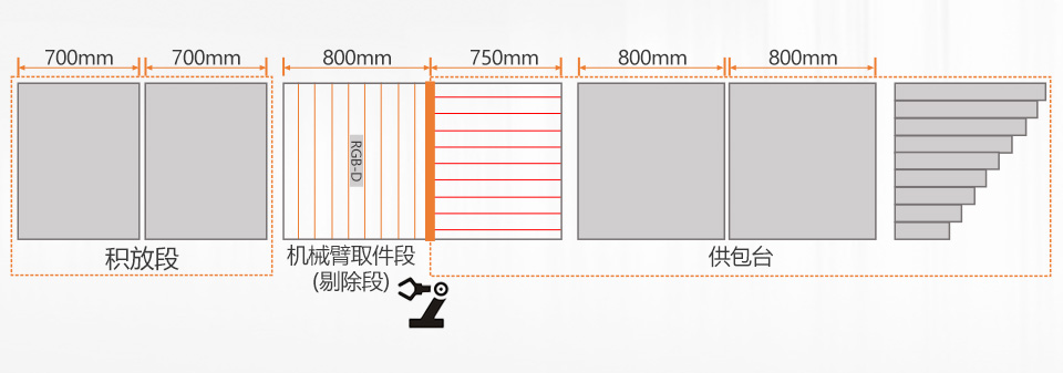 積放段:為機械臂取件段囤積包裹,并控制包裹合理流量