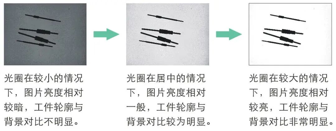 光圈對圖片亮度的影響:相同應(yīng)用條件下,同一鏡頭,光圈越大,通光孔徑越大,圖片越亮。