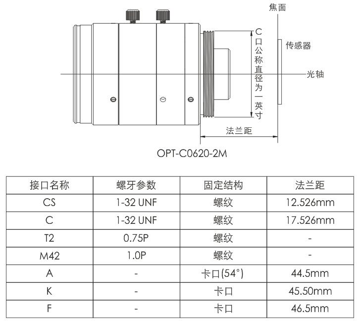 鏡頭與相機(jī)連接的機(jī)械接口,行業(yè)內(nèi)常用的光學(xué)接口已形成通用規(guī)范,例如C口、CS口、F口和K口。