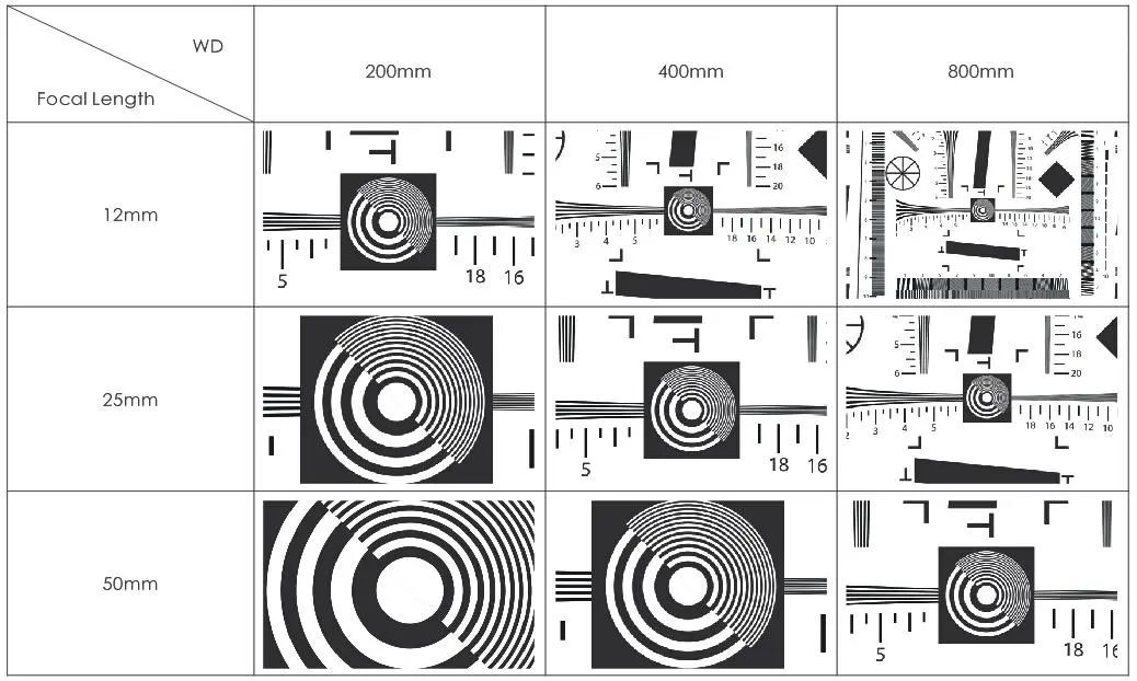 相同的工作距離下,焦距越短,視場角越大,視野也就越大;相同的焦距下,視場角一定,工作距離越遠(yuǎn),視野越大。