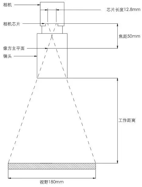 使用需求:視野為180mm×135mm,相機(jī)芯片為1″(芯片尺寸12.8mm×9.6mm),像元尺寸為3.5μm,相機(jī)接口為C型接口,工作距離小于800mm。(1)根據(jù)焦距公式計算,可得:f′=工作距離÷(水平視場÷芯片)=800÷(180÷12.8)=56.89mm。(2)選擇最接近的焦距,f′取50mm,根據(jù)確定的焦距,計算新的工作距離,可得:新的工作距離≈(水平視場÷芯片)×焦距=(180÷12.8)×50=703.125mm,新的工作距離<800mm,因此所選定的焦距可行。(3)像素匹配:像素=12.8÷(3.5×10-3)×9.6÷(3.5×10-3)=1.00×107 ,建議選擇高清晰1000萬像素級定焦鏡頭。(4)確定接口為C接口。(5)綜上所述,可選擇OPT Machine Vision的OPT-C5024-10M。