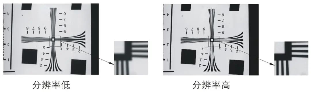 6、分辨率分辨率是指光學(xué)系統(tǒng)可以測到的被測物體上的最小可分辨特征尺寸。鏡頭能分辨物體的細(xì)節(jié)越小,鏡頭的分辨率就越高。通常用像面處每毫米能夠分辨的黑白相間的條紋對數(shù)(lp/mm)描述。在實際應(yīng)用中,建議鏡頭的分辨率不低于相機(jī)的分辨率。
