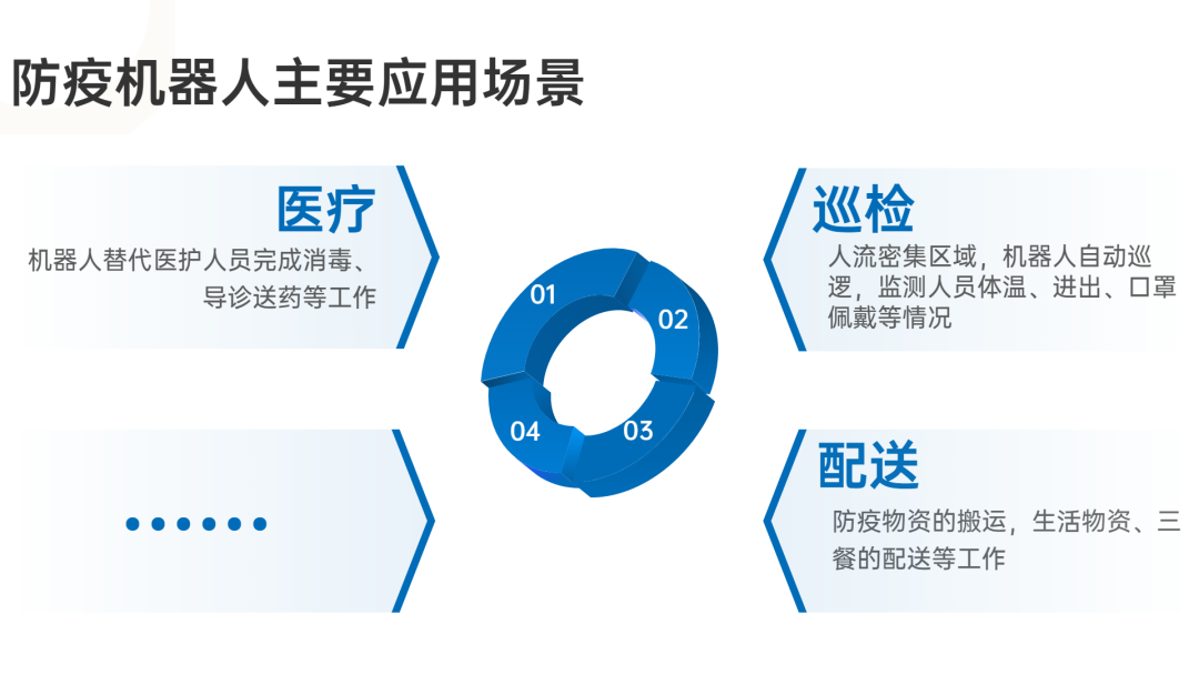 新冠疫情下,為減少人與人之間的接觸傳染,機器人作業(yè)需求被激發(fā),移動機器人走上防疫一線,用于疫情中醫(yī)療、配送、巡檢、家用等領域,協(xié)助醫(yī)院、學校、社區(qū)等公共場所進行智能防疫。