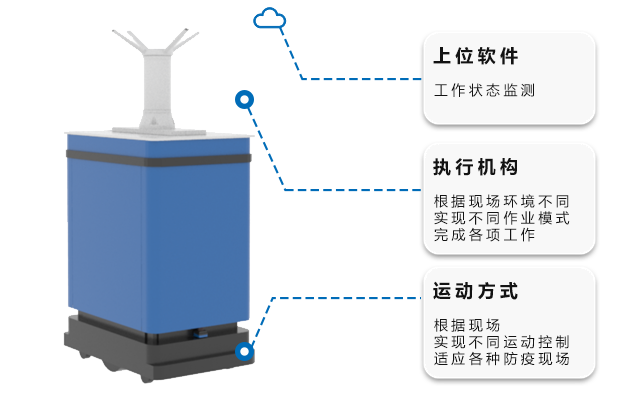 消毒機器人:適主要應用于醫(yī)院、機場、火車站、地鐵、商場、校園等場景,以機器人為載體,通過稀釋消毒藥劑的形式在公共場所進行空氣霧化消毒。
