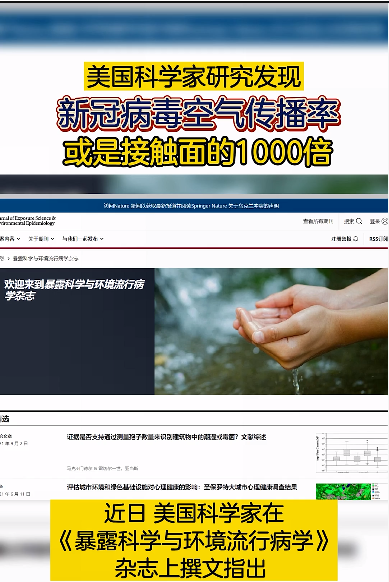 近日,美國科學(xué)家在《暴露科學(xué)與環(huán)境流行病學(xué)雜志》上撰文指出,新冠病毒空氣傳播率是接觸面?zhèn)鞑ヂ矢腥镜?000倍,人們從空氣中吸入病毒的幾率要高得多。該研究預(yù)測,通過吸入有新冠病毒的氣溶膠顆粒感染的概率可高達(dá)百分之一,而接觸受污染物品表面之后感染的概率為十萬分之一。