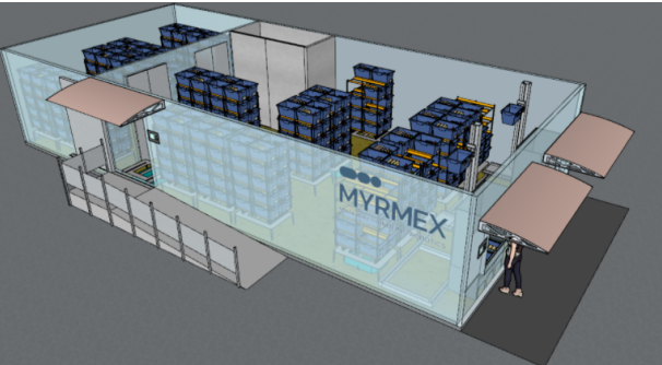 Myrmex使用自主移動(dòng)機(jī)器人為客戶(hù)的 "點(diǎn)擊取貨 "工作流程提供食品雜貨訂單。| 來(lái)源:Myrmex
