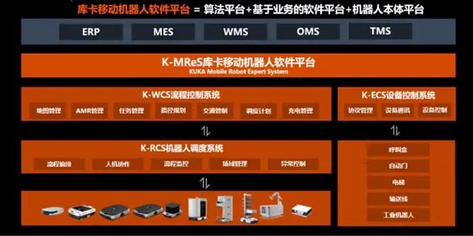 K-MReS軟件平臺(tái)即KUKA Mobile Robot Expert System,是庫(kù)卡移動(dòng)機(jī)器人專家管理系統(tǒng),基于多種復(fù)雜AI調(diào)度算法、靈活流程編排及外設(shè)對(duì)接全覆蓋能力,實(shí)現(xiàn)各類型移動(dòng)機(jī)器人在廠內(nèi)全流程各環(huán)節(jié)群體智能、任務(wù)執(zhí)行、高效協(xié)同,支持各種工業(yè)場(chǎng)景,打造無(wú)人化、數(shù)字化的智慧工廠。