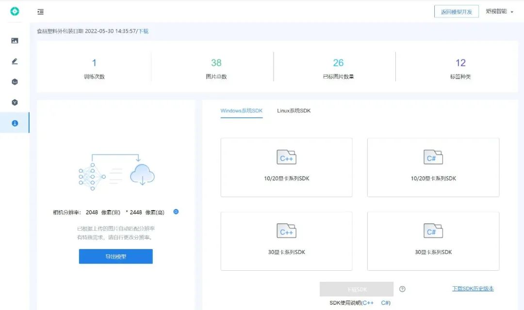 第五步:下載模型,部署本地,安裝到生產(chǎn)線上,驗收效果。