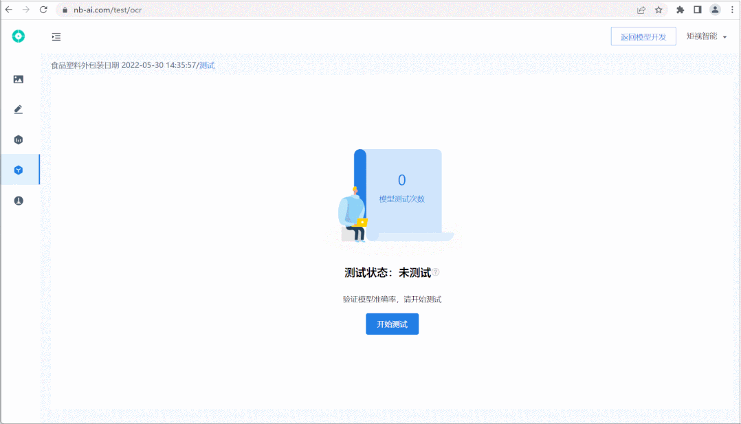 第四步:檢驗訓(xùn)練效果,點(diǎn)擊“測試”開始對訓(xùn)練效果進(jìn)行驗收,測試完畢后,未標(biāo)注的圖片信息轉(zhuǎn)為已標(biāo)注,表示自動標(biāo)注完成。