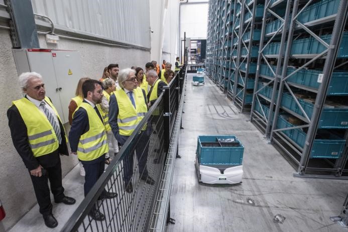 西班牙加泰羅尼亞自治區(qū)主席Pere Aragonès在位于薩倫特(巴塞羅那)的ESBO物流系統(tǒng)公司的Skypod機器人系統(tǒng)落成典禮上