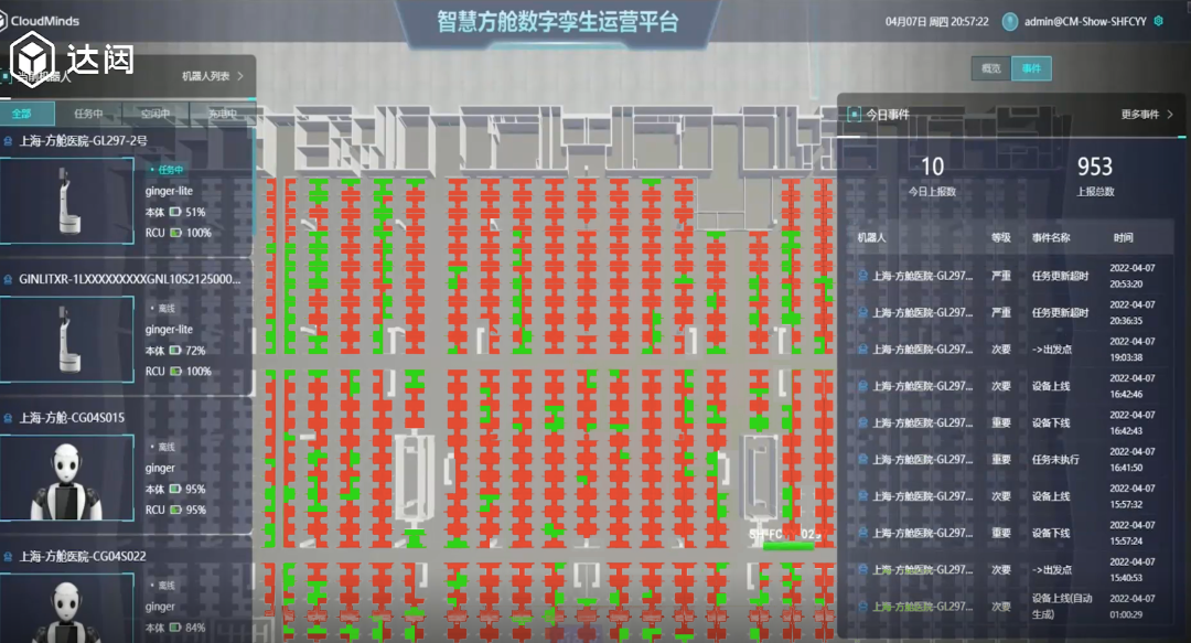 在GL-K300構(gòu)建的數(shù)字孿生運(yùn)營(yíng)平臺(tái)中,除了能看到機(jī)器人的運(yùn)行狀況外,還可以輕松了解例如:商寫office會(huì)議室的預(yù)約和使用情況;養(yǎng)老院老人的身體情況、在床情況、是否需要護(hù)工等;方艙醫(yī)院病床的使用情況,以便為新病患針對(duì)性制定病區(qū)和床位。