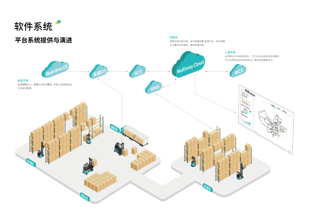以技術(shù)驅(qū)動,自研核心硬件、算法及軟件系統(tǒng),構(gòu)建了三位一體的軟件系統(tǒng)平臺,并協(xié)同演進,快速迭代升級,提供了兼具成本與性能優(yōu)勢的一體化場內(nèi)智能物流解決方案。