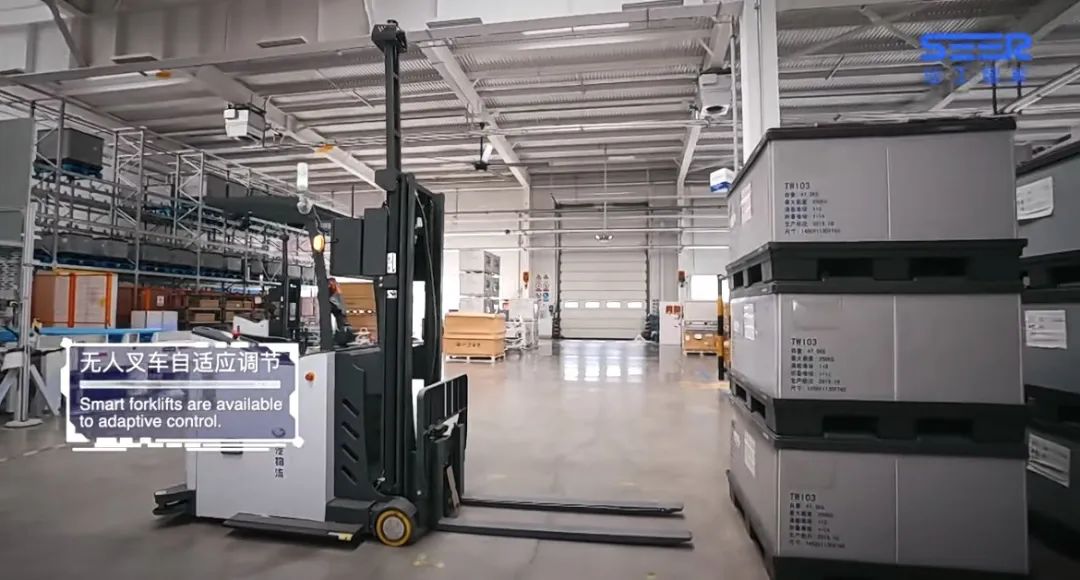 基于激光 SLAM 的平衡重叉車式機器人,實現(xiàn)真正的無軌化自主導航,無需改變倉庫環(huán)境,機器人即可在倉庫中自主穿行,智能搬運貨箱,快速實現(xiàn)貨物周轉(zhuǎn)及入庫。