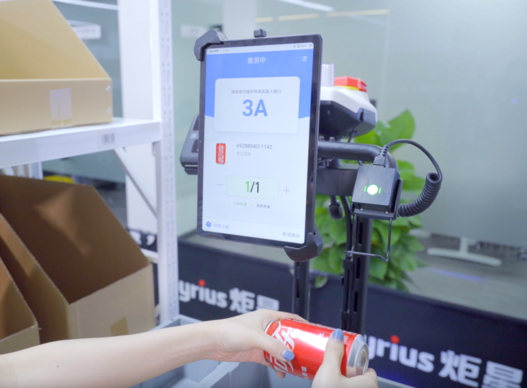對(duì)員工來(lái)說(shuō),上架、揀選貨品時(shí)的操作與過(guò)去相似,且機(jī)器人提供語(yǔ)音、畫面、燈光等提示,員工10分鐘可完成學(xué)習(xí)。