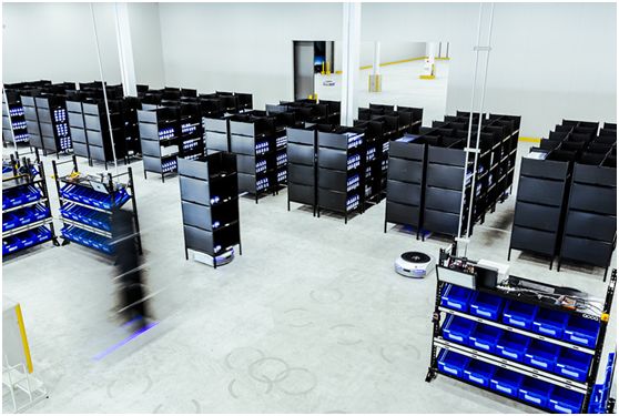 2017年,acca率先在2600平米的區(qū)域內(nèi)安裝了30臺(tái)揀選機(jī)器人和800個(gè)貨架。第二年,acca又部署了90臺(tái)揀選機(jī)器人和2400個(gè)貨架,將機(jī)器人面積擴(kuò)大到8000平方米。