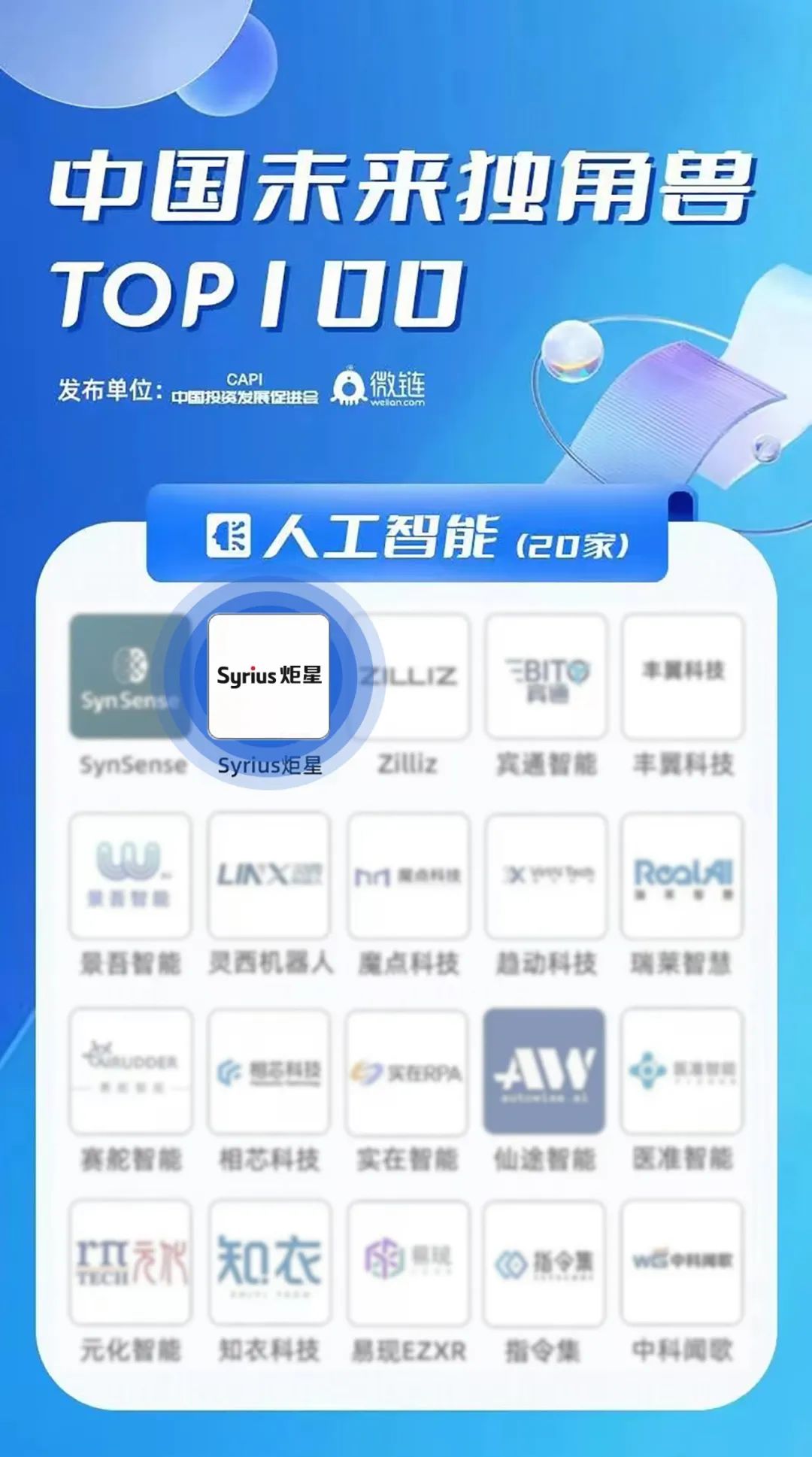 近日,在由杭州市人民政府、民建浙江省委共同舉辦的【第六屆萬物生長大會·中國未來獨角獸大會】上,Syrius炬星入選由中國投資發(fā)展促進會、「微鏈」聯(lián)合頒發(fā)的100家中國未來獨角獸榜單,并榮獲人工智能領域中國未來獨角獸之星獎項。