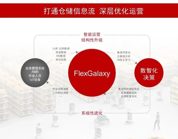 實際上,倉儲的自動化轉(zhuǎn)型,并不只是引入自動化設備,還需要為倉庫打造一套完整的倉儲管理系統(tǒng),打通上架、揀選、退貨之間的信息流,提高運行和管理的效率,從本質(zhì)上改變倉儲物流高密集型產(chǎn)業(yè)的現(xiàn)狀。Syrius炬星的解決方案里,以AMR 物流機器人+FlexGalaxy云服務平臺合力打造數(shù)智倉儲。