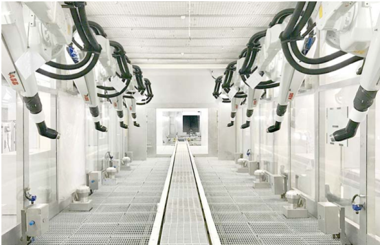 ABB的機器人被部署在OLA的一個電動滑板車巨型工廠的噴涂站。| 來源:ABB