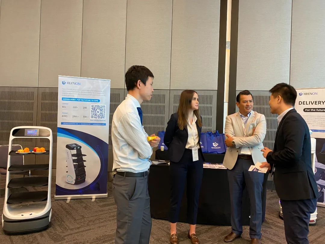 RC餐飲展會是加拿大最大的餐飲服務(wù)、酒店服務(wù)和酒水展會,參展企業(yè)囊括整個餐飲及酒店服務(wù)產(chǎn)業(yè)鏈,其中84%的參展企業(yè)均是加拿大餐飲行業(yè)排名100名的企業(yè)。擎朗智能在本次展會中,分別展示出送餐機器人、酒店機器人、引領(lǐng)機器人與消毒機器人四個系列擎朗智能商用服務(wù)機器人,為北美地區(qū)不同商用領(lǐng)域提供智慧轉(zhuǎn)型最佳適配機型。