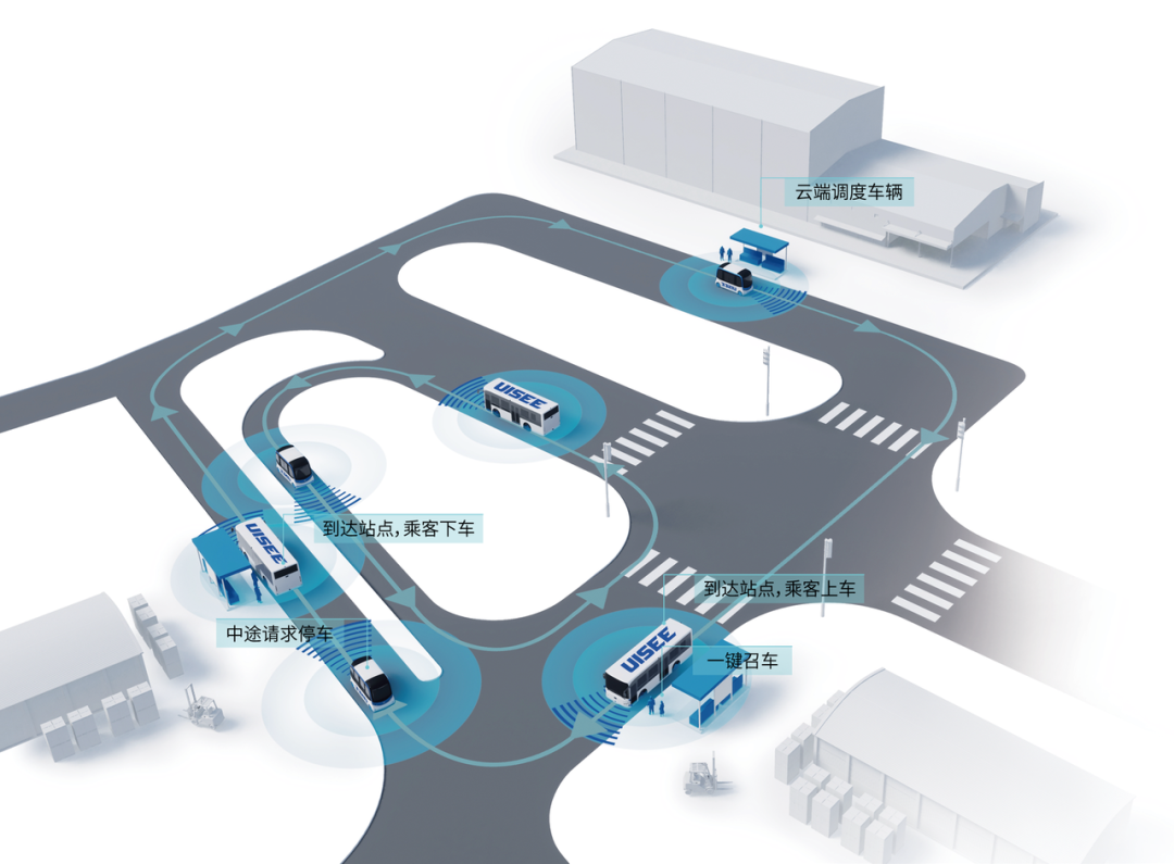當(dāng)同一場景下有多臺無人車運(yùn)行時,能夠?qū)崿F(xiàn)特殊場景下的無人車協(xié)同通行,支持無人車自動組隊(duì)/離隊(duì)等編隊(duì)功能,并實(shí)現(xiàn)互相避讓,保證安全。馭勢科技為鋰電行業(yè)打造的云端運(yùn)營管理系統(tǒng),便于打通各工序流程的信息和設(shè)備屏障,通過車端、路端數(shù)據(jù)的全流程、自動化采集、存儲、傳輸及分析,不斷優(yōu)化無人駕駛算法、系統(tǒng)的安全性及用戶體驗(yàn)對系統(tǒng)組件做實(shí)時和預(yù)測性的運(yùn)維,支持無人駕駛應(yīng)用的運(yùn)營和管理。面向基層作業(yè)人員開發(fā)的人機(jī)交互系統(tǒng),能夠?qū)崿F(xiàn)高效的人機(jī)協(xié)同,在進(jìn)行一些非標(biāo)準(zhǔn)操作時,可以隨時切換手動作業(yè)。載人應(yīng)用場景除了物流應(yīng)用場景,馭勢科技廠區(qū)無人公交解決方案還能為鋰電制造企業(yè)提供廠區(qū)載人應(yīng)用。馭勢科技無人公交解決方案基于全棧式無人駕駛技術(shù),可實(shí)現(xiàn)全場景無人運(yùn)營,支持自動發(fā)車、自動運(yùn)營、自動門控、自動泊車、自動收車等功能。馭勢科技無人公交無需場端改造,極速部署即可使用。在廠區(qū)常態(tài)化運(yùn)營后,可實(shí)現(xiàn)全天候接送員工,極大降低人工成本和運(yùn)營成本。無人公交基于多傳感器融合的全方位感知,可實(shí)現(xiàn)厘米級的高精度定位與高可靠的規(guī)劃控制,并具備自主避障功能,“四種單車模式”和“多車模式”可靈活自由組合,確保運(yùn)營安全與高效。
