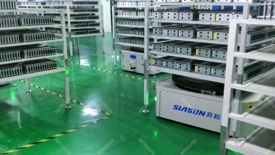 ? 組裝線線端產(chǎn)生的空緩存柜可由移動(dòng)機(jī)器人轉(zhuǎn)運(yùn)至模組、PACK原材庫