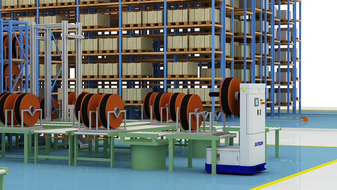 運(yùn)用叉式移動(dòng)機(jī)器人完成不同工藝點(diǎn)間的搬運(yùn)&粉料托盤至投料點(diǎn)之間的搬運(yùn),替代傳統(tǒng)剛性輸送線設(shè)備