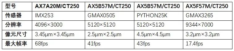 模塊化結(jié)構(gòu)“爆炸圖”時(shí)至今日,得益于睿智的“模塊化”設(shè)計(jì)理念,我司在大面陣萬兆網(wǎng)接口系列中,已經(jīng)成功完成4款產(chǎn)品的布局,其分辨率覆蓋12MP、25MP以及65MP,其產(chǎn)品的主要參數(shù)對(duì)比如下,可供客戶按需進(jìn)行選擇: