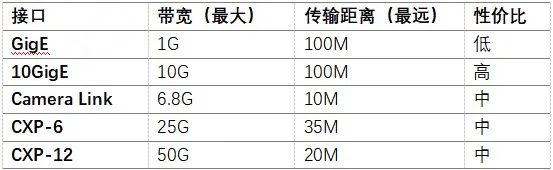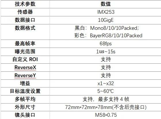 萬兆網(wǎng)接口相機(jī)主要參數(shù)對(duì)比表