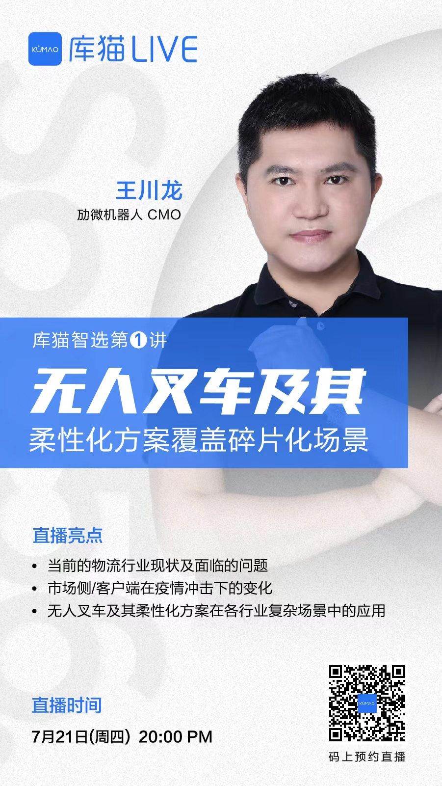 盡管疫情、用工荒等問題席卷全球,但智能物流領(lǐng)域無人叉車的重要性卻與日俱增。勱微機器人作為領(lǐng)先的智能物流解決方案提供商,擁有業(yè)界最全的無人叉車系列產(chǎn)品以及高柔性化的解決方案能力。7月21日晚8點,勱微機器人CMO王川龍將以線上直播形式分享“無人叉車及其柔性化方案覆蓋碎片化場景”。