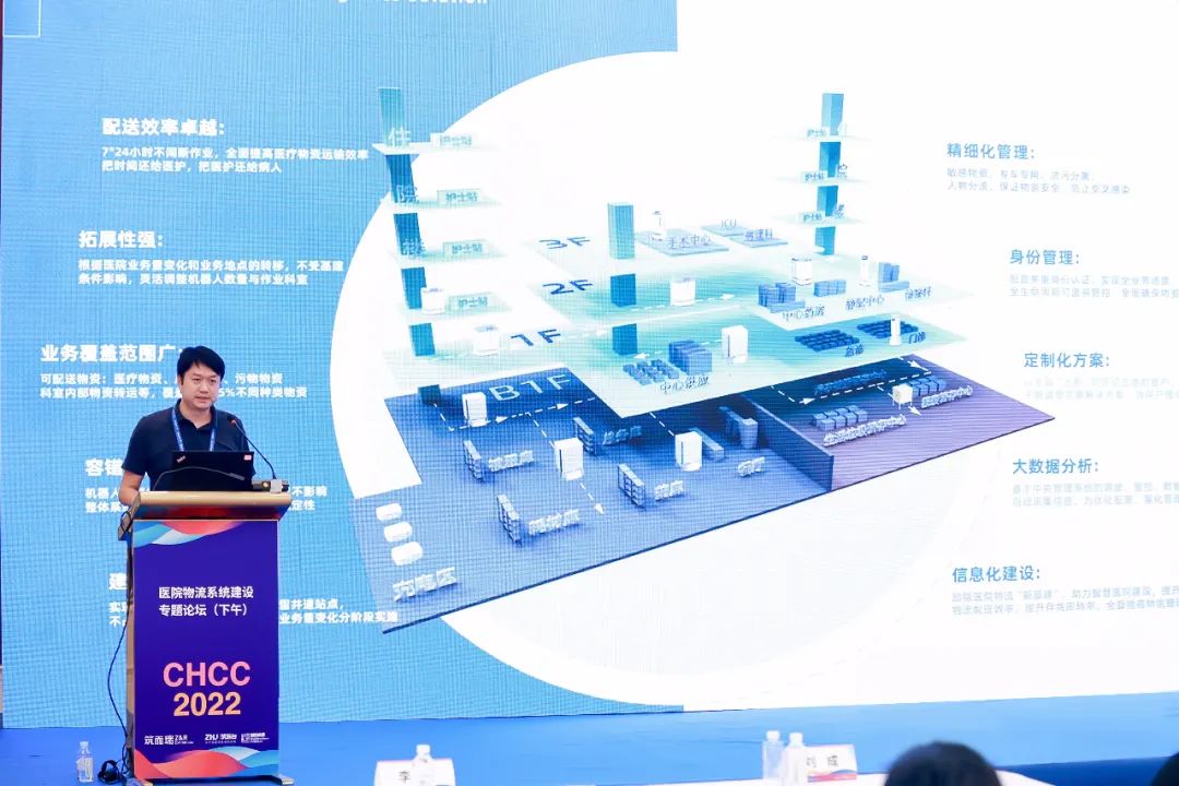當下醫(yī)院的物流運輸具備需求龐大、物資品種繁雜、安全要求高、時效性強、院感防控嚴、物資管理需要可追溯等痛點,智慧醫(yī)院需提升物流系統(tǒng)的運行效率和智能化程度。針對上述痛點,擎朗智能依托旗下醫(yī)療服務機器人產(chǎn)品矩陣及自研智能管控平臺,在展會現(xiàn)場重磅推出數(shù)智化醫(yī)院解決方案,受到湖北衛(wèi)視等媒體的廣泛關注和報道。擎朗智能醫(yī)療部產(chǎn)品總監(jiān)李晗發(fā)表《后疫情時代數(shù)智化醫(yī)院解決方案》相關演講,對后疫情時代醫(yī)院建設的趨勢、擎朗醫(yī)療數(shù)智化醫(yī)院解決方案和案例進行分享,并對人工智能技術在醫(yī)療行業(yè)中應用發(fā)展發(fā)表觀點與看法。