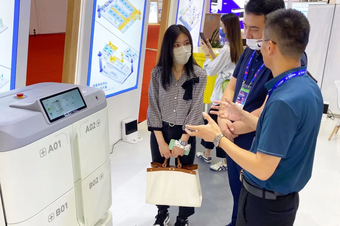 同時,展位中還有醫(yī)療配送機器人M1系列及M301、自主移動式消毒機M2等眾多新品,豐富的產(chǎn)品組成的家族矩陣可有效覆蓋院內(nèi)90%以上的物資運輸需求,實現(xiàn)精準送達,有效提升醫(yī)院物流傳輸效率。