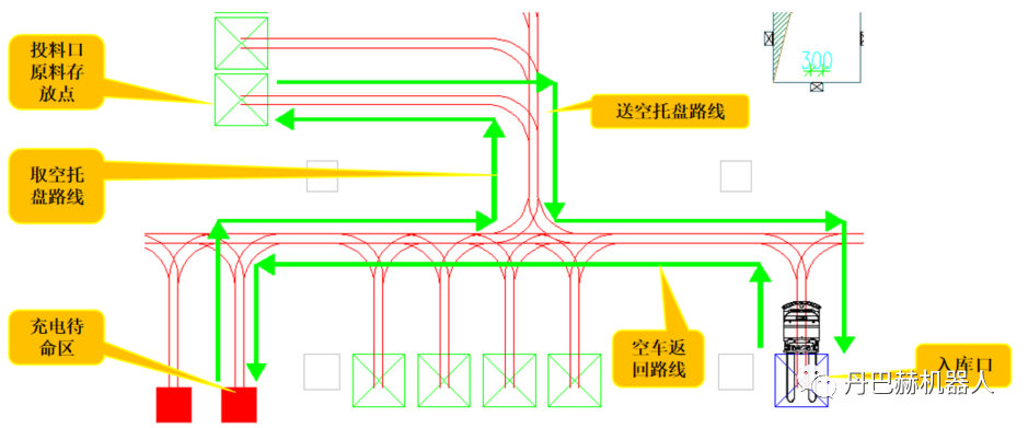 原料/空托盤運(yùn)輸路線規(guī)劃布局圖