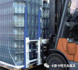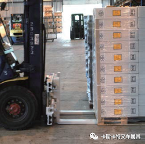 作業(yè)時(shí)既可作為一臺(tái)滑臂式夾類也可作為一臺(tái)調(diào)距叉使用??捎秘洸娴膫?cè)面夾持笨重的貨物,諸如板條箱和軟包等。還可以快速調(diào)整貨叉的間距實(shí)現(xiàn)托盤貨物的搬運(yùn),從而降低貨物的磨損和破損。