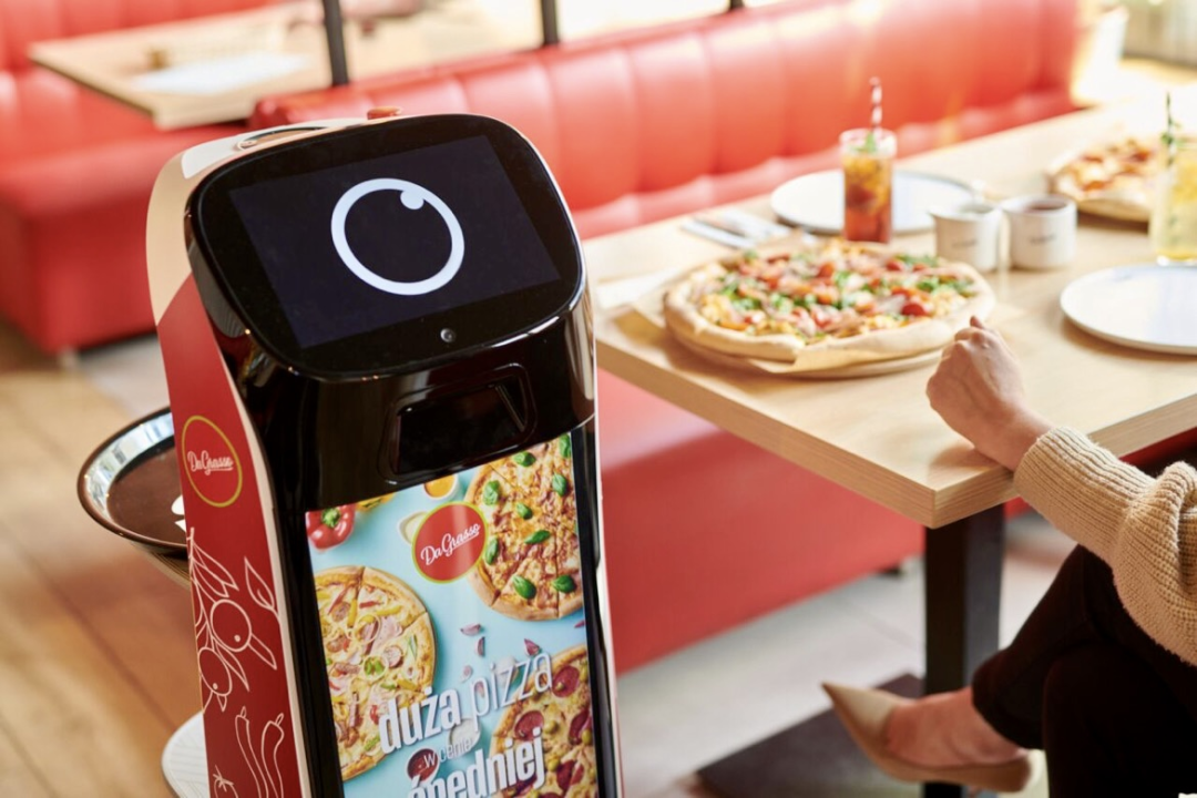 隨著智能機器人越來越頻繁地出現(xiàn)在我們的日常生活中,關(guān)于科技能否取代人工服務(wù)的疑慮也隨之而來。Da Grasso特許經(jīng)營發(fā)展部運營經(jīng)理Magdakena Parfianowicz對此描述:“‘葫蘆’的工作主要是支援服務(wù)員履行職責(zé),這意味著顧客在享受機器人服務(wù)的同時,也能夠從人工服務(wù)中受益。”在Da Grasso披薩店,“葫蘆”能夠在迎接客人的到來時附上菜單,服務(wù)人員可在顧客需要時及時聽取并滿足大家的個人化需求。食物預(yù)備完畢,機器人會平穩(wěn)快速將餐品送至對應(yīng)餐桌,給客人帶來更好的就餐體驗的同時也有效減輕了服務(wù)員工作。