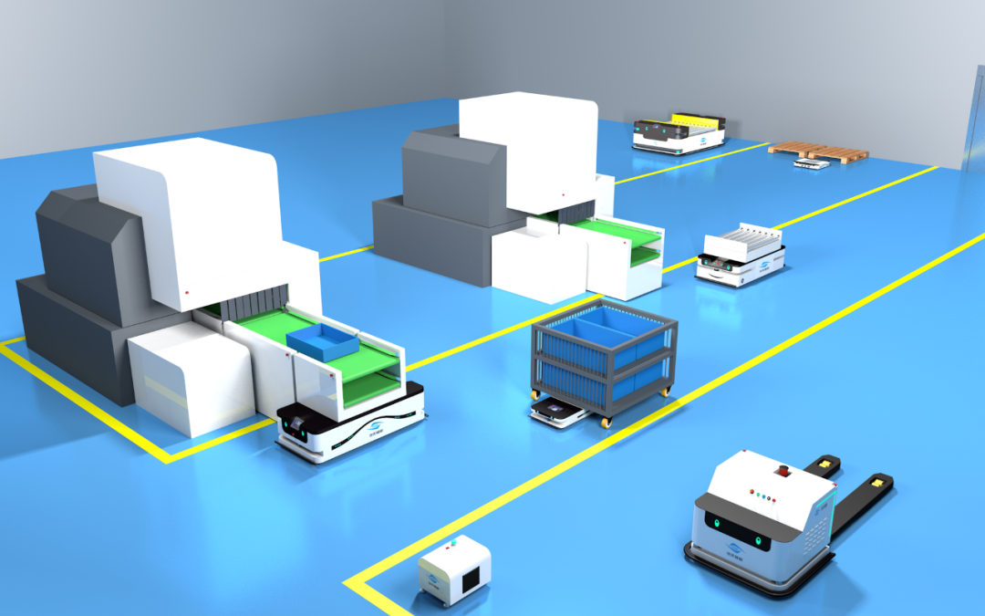 華天視航AGV系統(tǒng)由AGV小車、AGV控制系統(tǒng)、AGV充電系統(tǒng)三大部分組成,具有功能性好、靈活度高、時效性等優(yōu)勢,可實現(xiàn)從儲存、自動化輸送、自動化生產到成品配送的完整自動化。