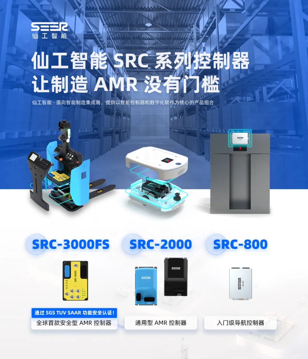 在展位中,全球首款 AMR 安全型控制器 SRC-3000FS 再次成為關(guān)注焦點(diǎn),作為全球首個(gè)且唯一通過(guò) SGS TüV SAAR 功能安全認(rèn)證的控制器,精致的外觀更抓人眼球,深析性能更彰顯了仙工智能的技術(shù)實(shí)力。