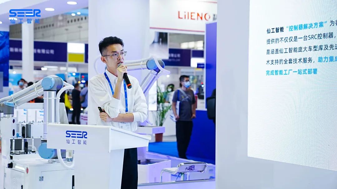 仙工智能展位每天設(shè)置四場(chǎng)不同主題精彩演講——「重新定義:以標(biāo)準(zhǔn)化產(chǎn)品支撐非標(biāo)應(yīng)用」、「AMR 控制器—讓制造移動(dòng)機(jī)器人更簡(jiǎn)單」、「助力集成商,打造半導(dǎo)體行業(yè)智能物流解決方案」、「仙工智能:以智能控制器和數(shù)字化軟件為核心的產(chǎn)品組合提供商」。