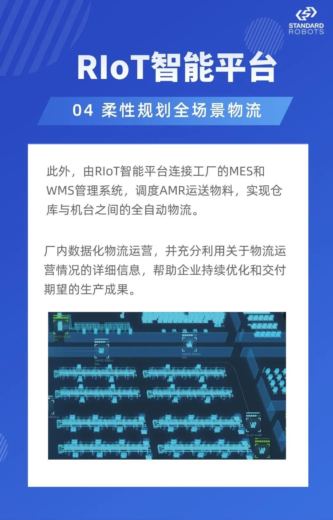 斯坦德機(jī)器人(Standard Robots)致力于為優(yōu)秀的系統(tǒng)集成商及終端制造工廠尋找標(biāo)準(zhǔn)化、可復(fù)制的算法應(yīng)用場(chǎng)景,實(shí)現(xiàn)其柔性化、敏捷化的廠內(nèi)物流需求,為客戶踐行輕資產(chǎn)、回報(bào)快的初期物流投入,為行業(yè)構(gòu)建信息化、數(shù)據(jù)化的物流基礎(chǔ)設(shè)施,是全球真正踐行把激光導(dǎo)航AGV應(yīng)用于華為、中興、富士康等實(shí)際工業(yè)物流領(lǐng)域的高科技企業(yè)。