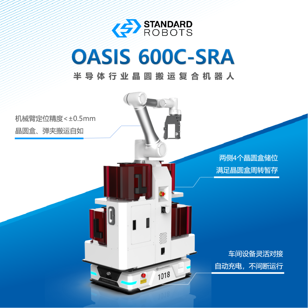 在該企業(yè)的晶圓制造車間,斯坦德根據(jù)車間不同機(jī)臺(tái)的上下料對(duì)接、搬運(yùn)頻次、晶圓特性,針對(duì)性地規(guī)劃了以復(fù)合機(jī)器人搬運(yùn)晶圓盒上下料、E-Rack庫位管理、RIoT智能調(diào)度為核心的柔性物流解決方案。