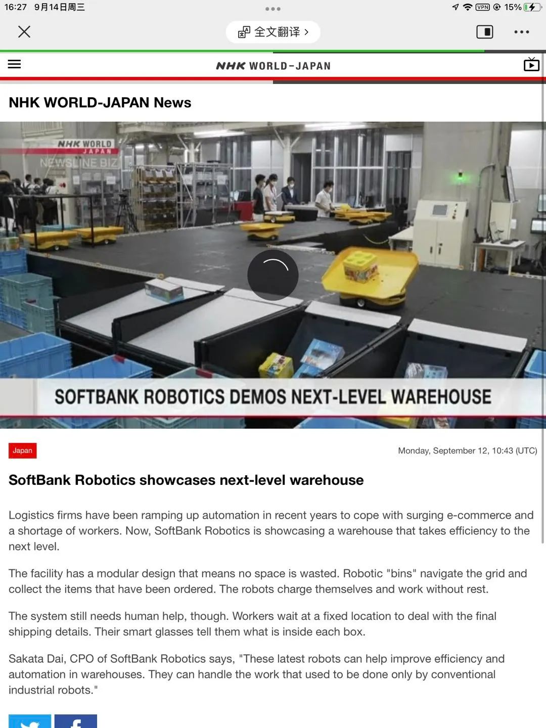 這次也不例外!9月14日,由立鏢團隊領(lǐng)銜,與軟銀機器人共建的涵蓋智能分揀方案的新一代倉庫在日本驚喜亮相,更是獲得了NHK的專題新聞報道。