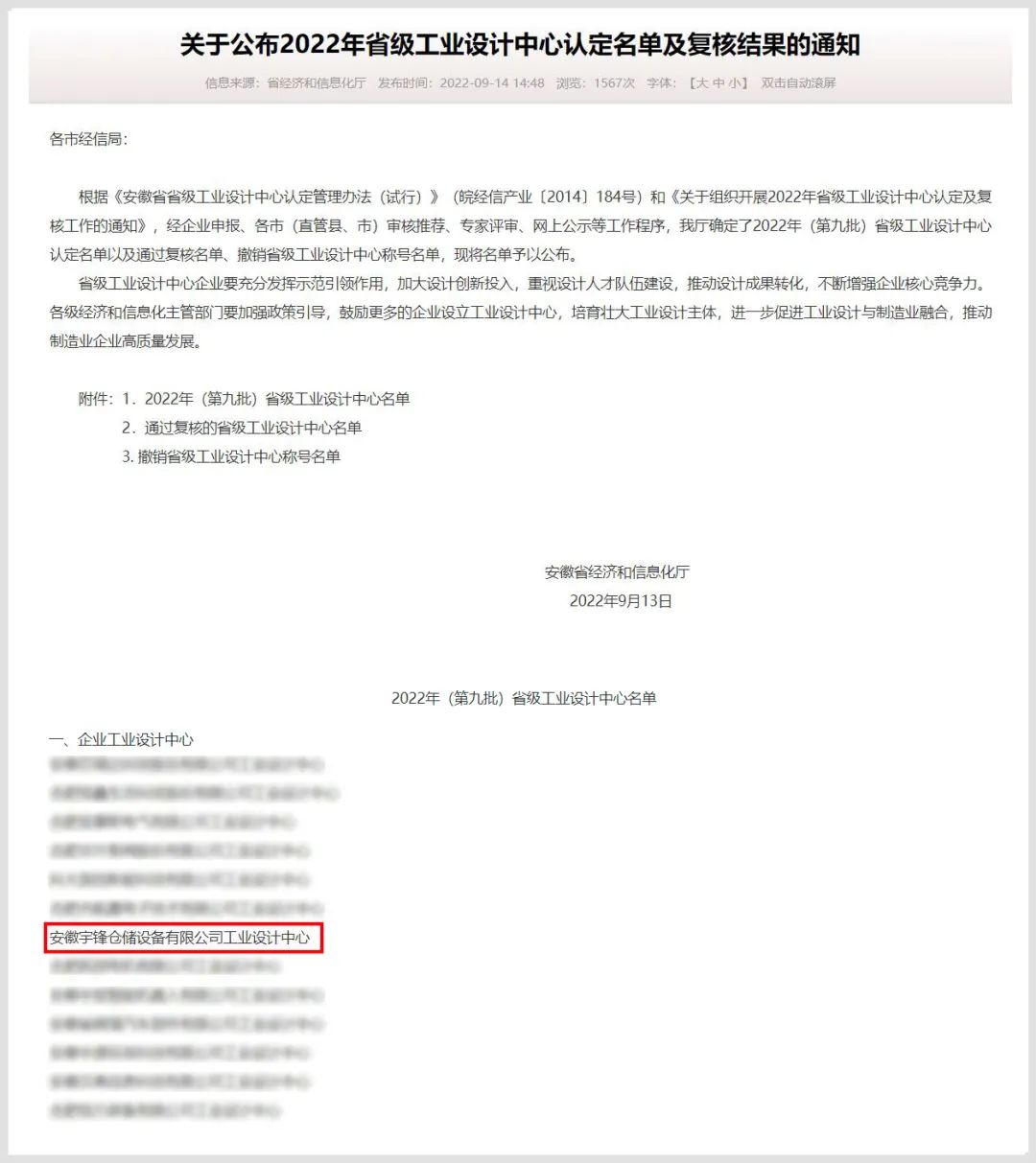 日前,安徽省經(jīng)濟(jì)和信息化廳官網(wǎng)公示了“2022年(第九批)省級工業(yè)設(shè)計中心認(rèn)定名單及復(fù)核結(jié)果”,安徽宇鋒工業(yè)設(shè)計中心榜上有名!該項認(rèn)定是對安徽宇鋒工業(yè)設(shè)計水平以及能力的高度認(rèn)可!