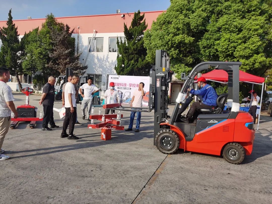在熱烈的陽光下,現(xiàn)場氣氛活躍,參賽選手各個摩拳擦掌、活力全開。憑借扎實的技術(shù)本領(lǐng)和林德叉車的精準操控,游刃有余地進行前進、倒車、轉(zhuǎn)彎等一個個難度動作,發(fā)揮著最佳實力。此次比賽所用叉車為林德電動平衡重叉車。賽事過程,不僅是考核選手們的操作水準,更對叉車設備的穩(wěn)定性及安全性是極大的考驗。林德叉車穩(wěn)定性強,寬視野門架搭配林德指尖控制手柄及雙踏板系統(tǒng),操控便捷舒適;雙交流電機驅(qū)動動力強勁,受到叉車司機們的廣泛好評。