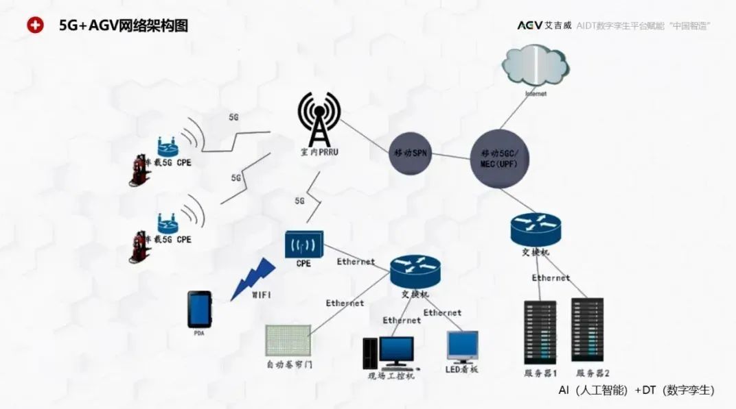 ③無人叉車內(nèi)置5G模組,采用邊緣計算平臺、5G定制專網(wǎng)、5G芯片模組與終端深度融合,將AGV調(diào)度系統(tǒng)部署在5G工業(yè)邊緣云,實現(xiàn)云端統(tǒng)一調(diào)度。在5G專網(wǎng)環(huán)境下,依托低時延、廣連接、大帶寬特性解決以往工業(yè)AP切換時延高、易掉線的問題,有效降低掉線率90%以上。支持5G網(wǎng)絡與WiFi局域網(wǎng)多網(wǎng)絡融合,無縫切換,數(shù)據(jù)的高速實時傳輸,提高數(shù)據(jù)的實時性、穩(wěn)定性、可擴展性,保證生產(chǎn)的準確可靠。